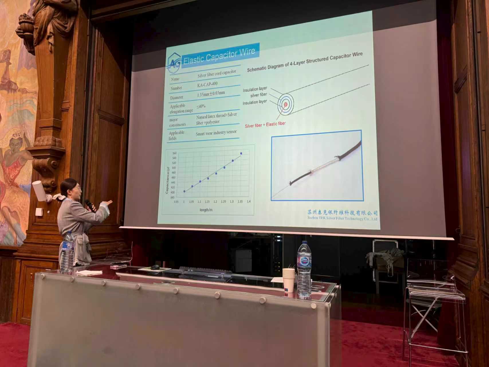 大会围绕可持续功能性纺织品的未来发展与应用展开探讨,涉及智能可穿戴设备及医疗行业等领域。 苏州泰克银纤维科技有限公司在功能性纺织品领域进行了深入研发。我们开发的银纤维电极可应用于智能可穿戴领域,适用于心电信息采集与运动监测。该产品已非常成功,被广泛应用于智能可穿戴产品中。